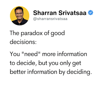 Paul Graham wrote an article that liberated several startup founders and leaders from overthinking every move and allowed them to be okay with not having all the information when trying to build something or get something done.